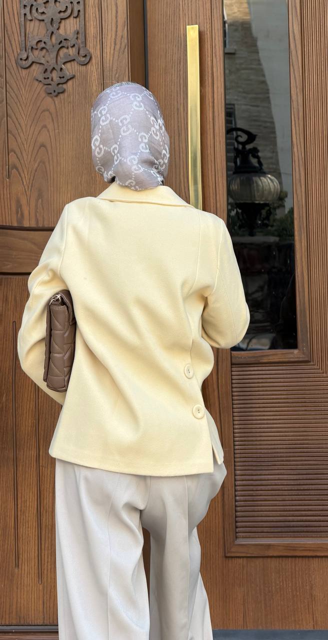 کت زنانه کوتاه مدل الیزه برند الین جنس فوتر کوبیده – استایل کلاسیک قد ۶۰ سانتیمتر